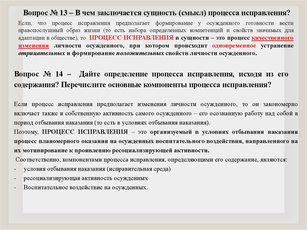 Вопрос № 13 – В чем заключается сущность (смысл) процесса исправления?