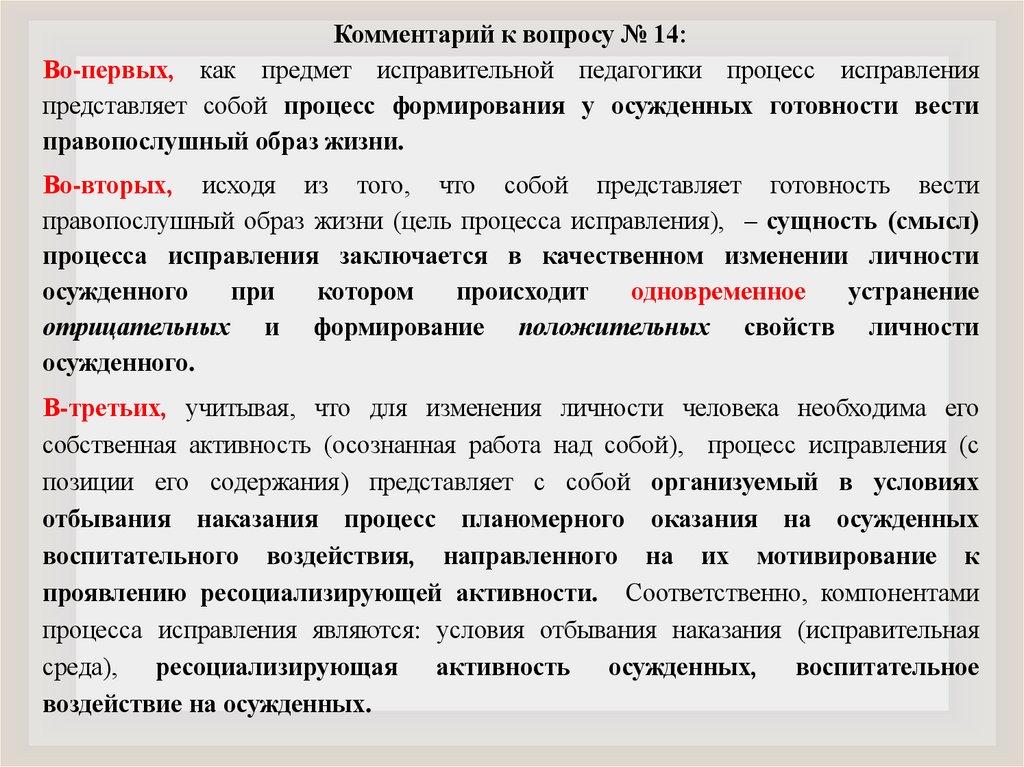 Вопрос № 14 – Дайте определение процесса исправления, исходя из его содержания?