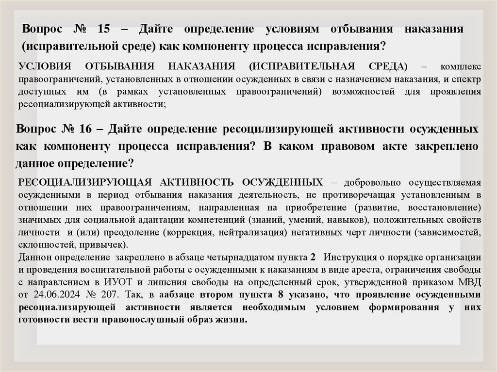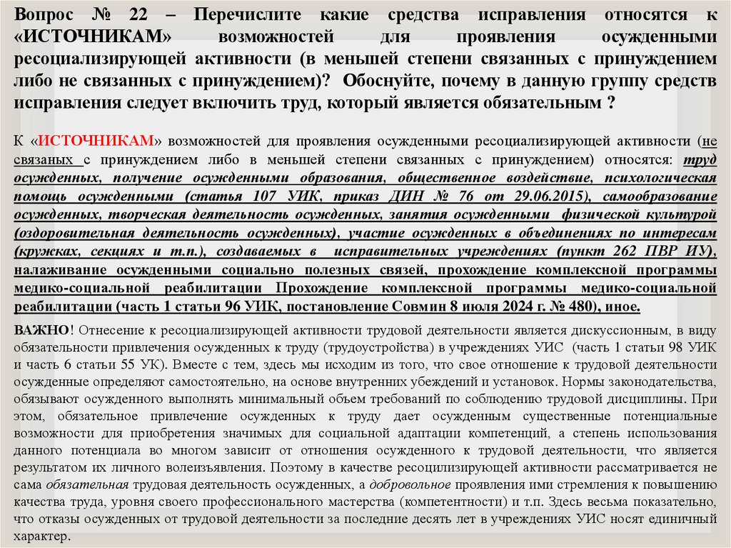 Вопрос № 16 – Дайте определение ресоцилизирующей активности осужденных как компоненту