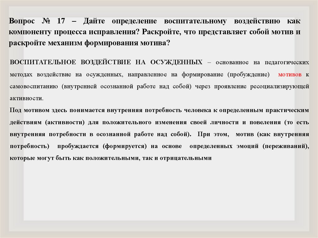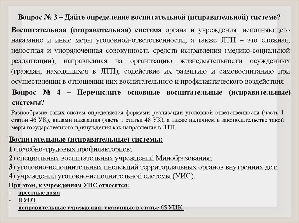 Вопрос № 3 – Дайте определение воспитательной (исправительной)