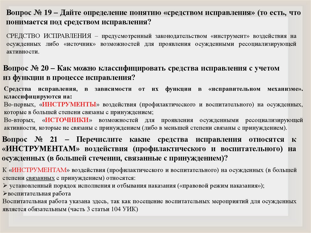 Вопрос № 19 – Дайте определение понятию «средством исправления» (то есть, что понимается под