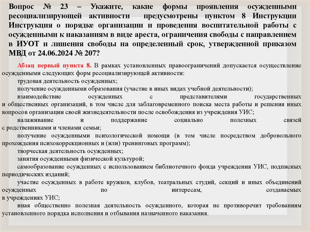 Вопрос № 23 – Укажите, какие формы проявления осужденными ресоциализирующей активности