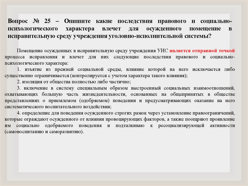 Вопрос № 26 – Опишите какие последствия правового и социально-психологического характера влечет