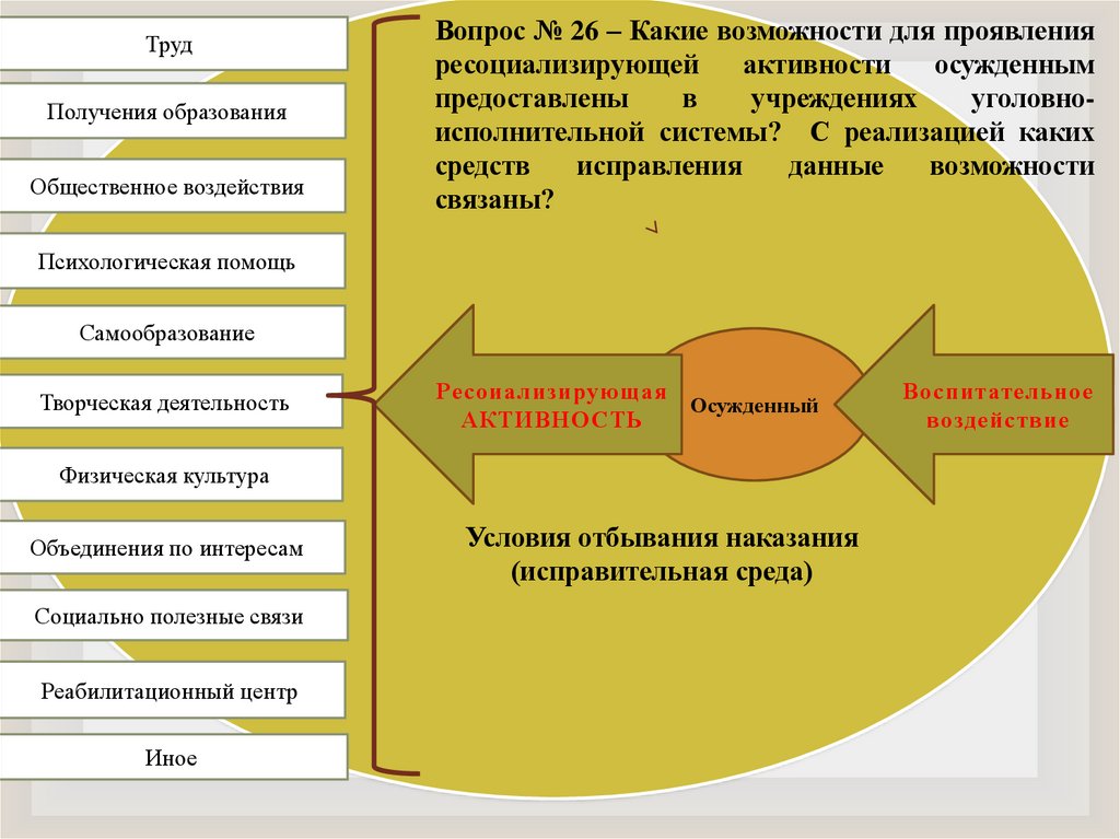 Вопрос № 27 – Какие возможности для проявления ресоциализирующей активности осужденным