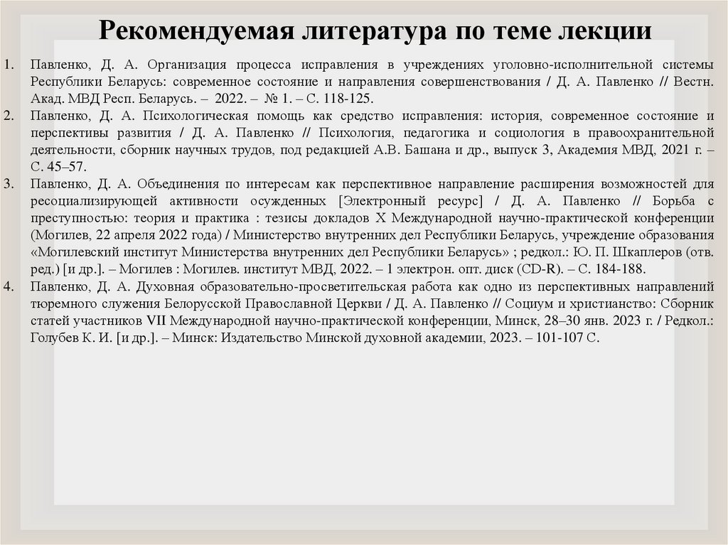 Павленко, Д. А. Процесс исправления / Д. А. Павленко // Вестник Академии МВД Респ. Беларусь. –