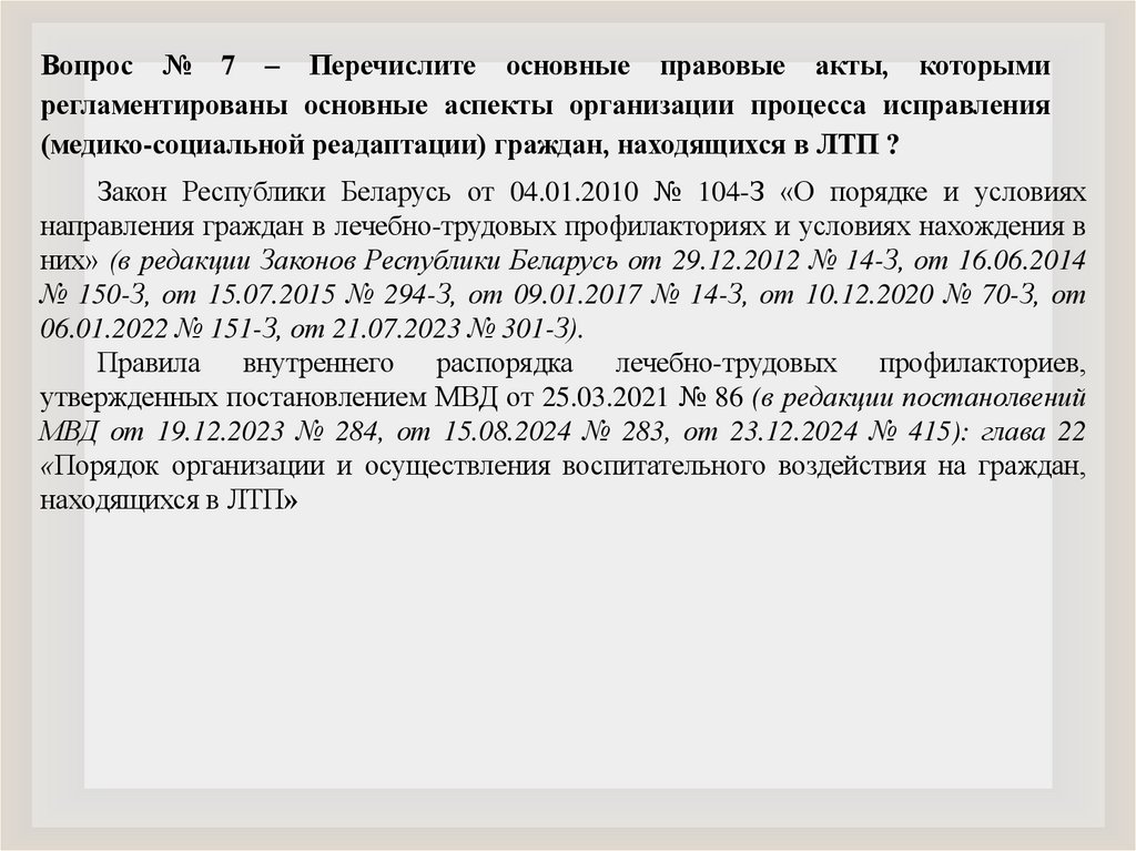 лечебно-трудовых профилакториях и условиях нахождения в них» (в редакции Законов Республики