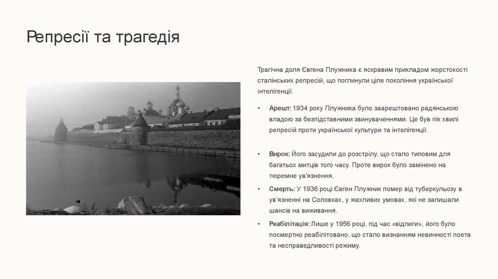 Репресії та трагедіяТрагічна доля Євгена Плужника є яскравим прикладом жорстокості