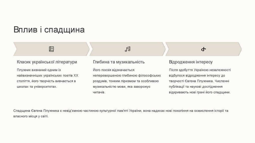 Спадщина Євгена Плужника є невід'ємною частиною культурної пам'яті України, вона надихає нові покоління на осмислення історії та