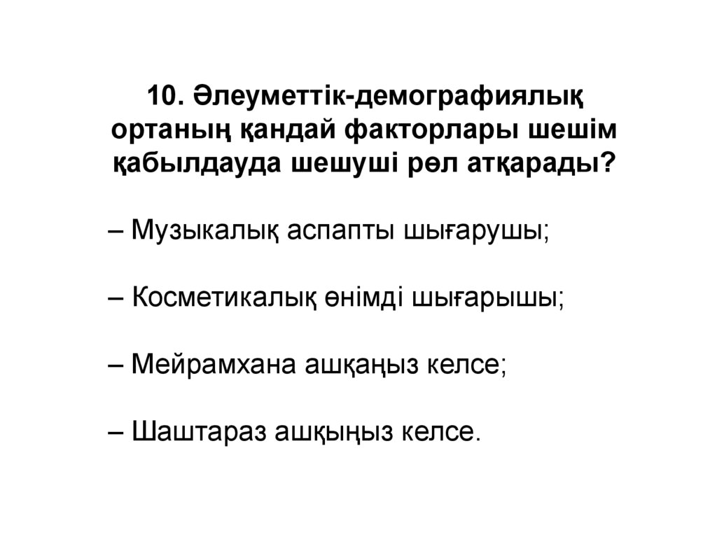 10. Әлеуметтік-демографиялықортаның қандай факторлары шешім