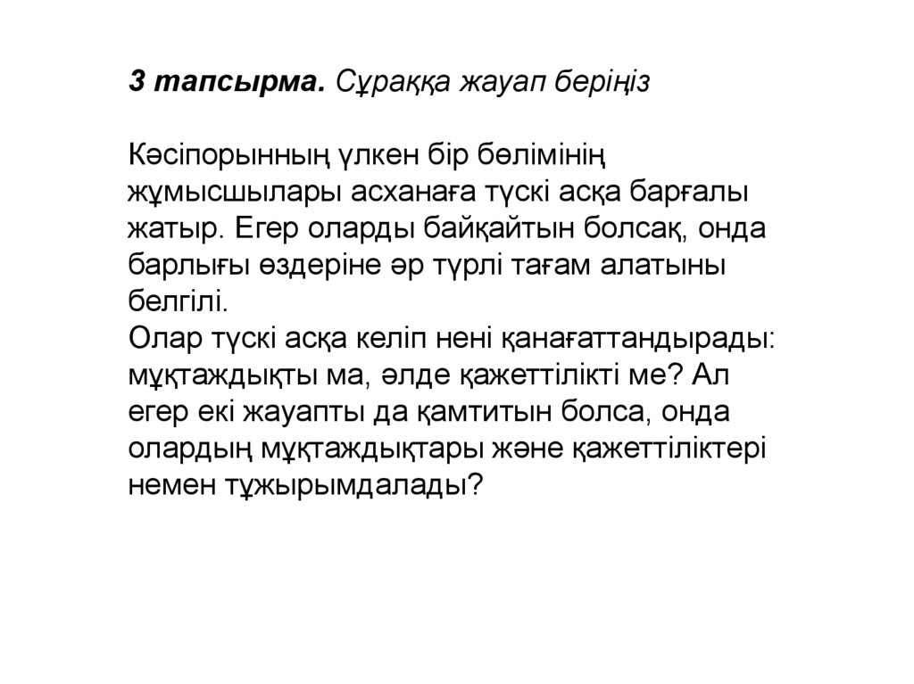 3 тапсырма. Сұраққа жауап беріңізКәсіпорынның үлкен бір бөлімінің