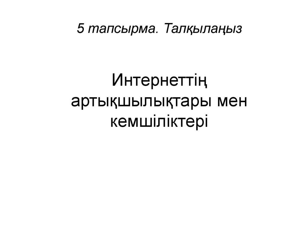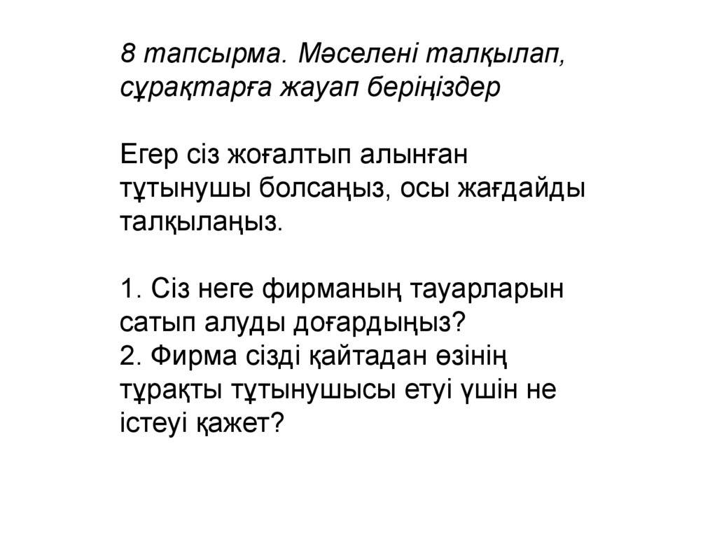 8 тапсырма. Мәселені талқылап,сұрақтарға жауап беріңіздер