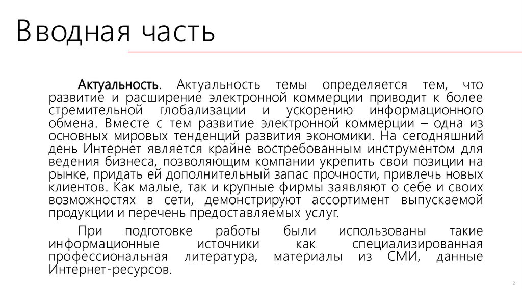 Вводная частьАктуальность. Актуальность темы определяется тем, что