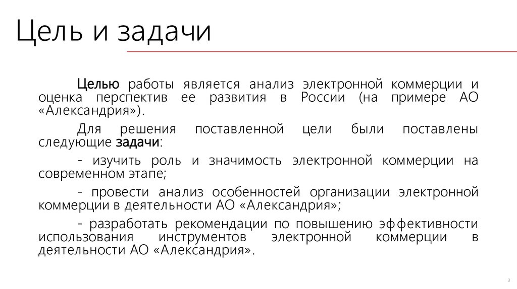 Цель и задачиЦелью работы является анализ электронной коммерции и