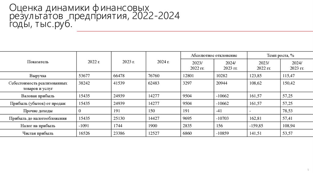 Оценка динамики ф инансовыхрезультатов предприятия, 2022-2024