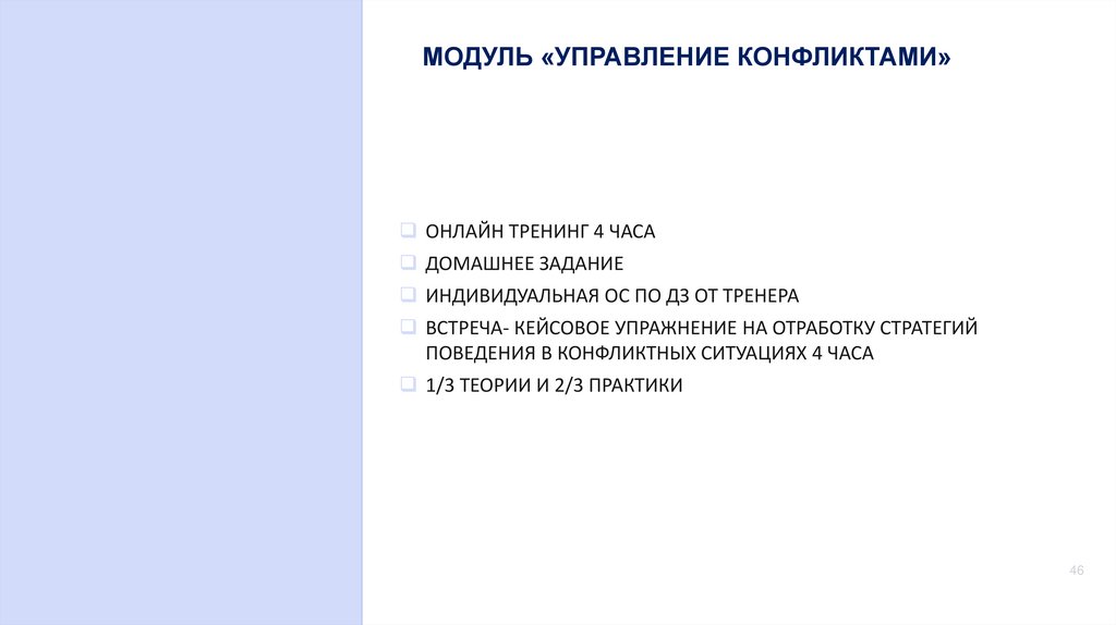 МОДУЛЬ «УПРАВЛЕНИЕ КОНФЛИКТАМИ»ОНЛАЙН ТРЕНИНГ 4 ЧАСА