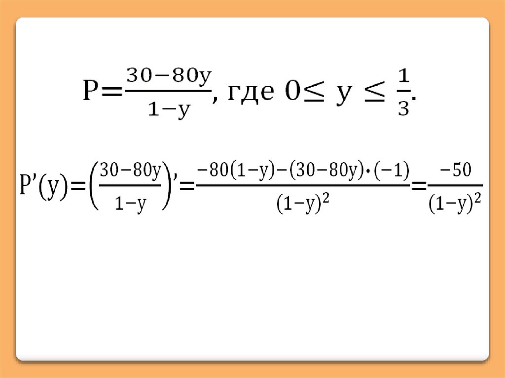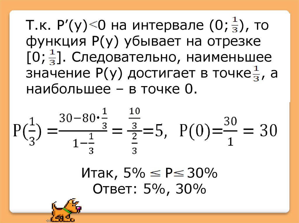 Т.к. Р’(у) 0 на интервале (0; ), тофункция Р(у) убывает на отрезке