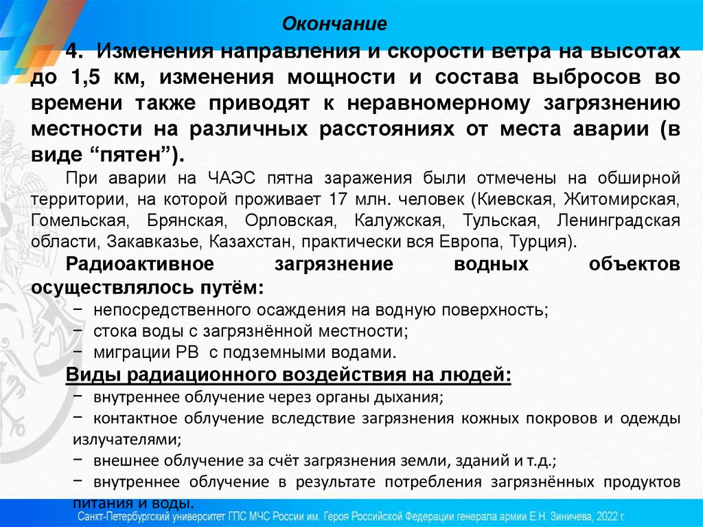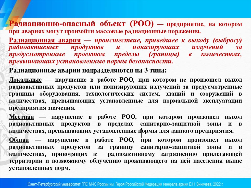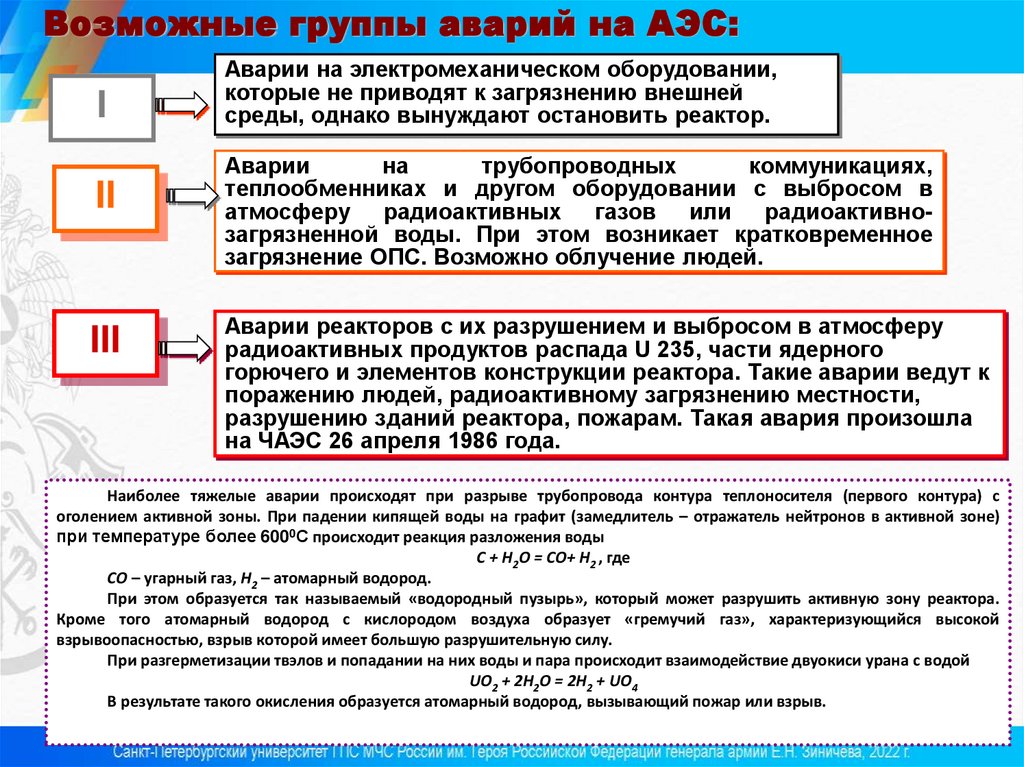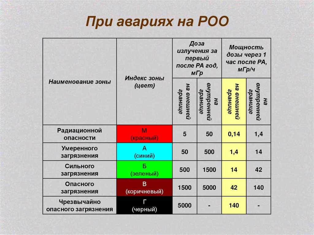 взрывах, авариях на АЭС, ХОО, ПВОО.