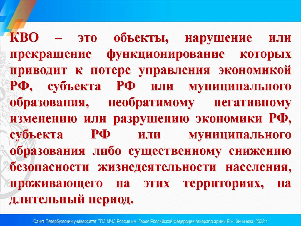 КВО – это объекты, нарушение илипрекращение функционирование которых