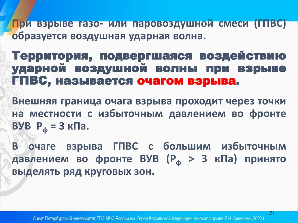 давлением во фронте ВУВ (Рф ˃ 3 кПа) принято