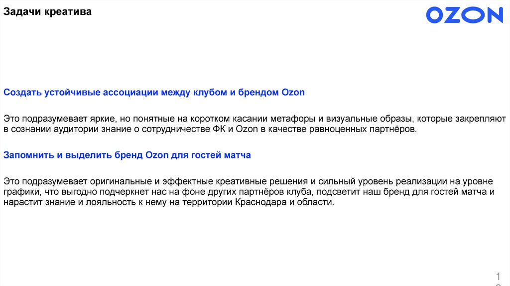 Задачи креативаСоздать устойчивые ассоциации между клубом и брендом Ozon