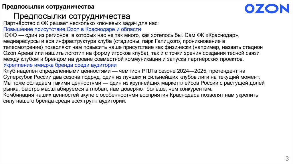 Ozon Арена или нашить логотип на форму игроков клуба), так и с точки зрения создания тесной связи
