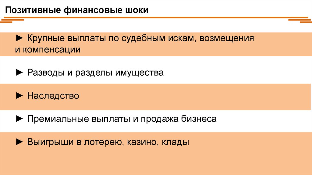 Позитивные финансовые шоки► Крупные выплаты по судебным искам, возмещения