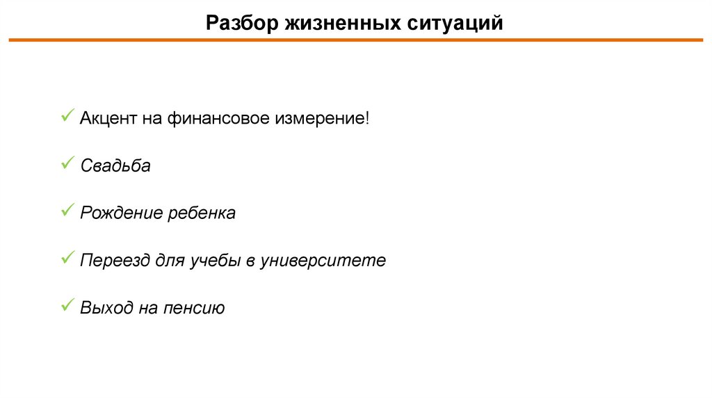Разбор жизненных ситуацийАкцент на финансовое измерение!