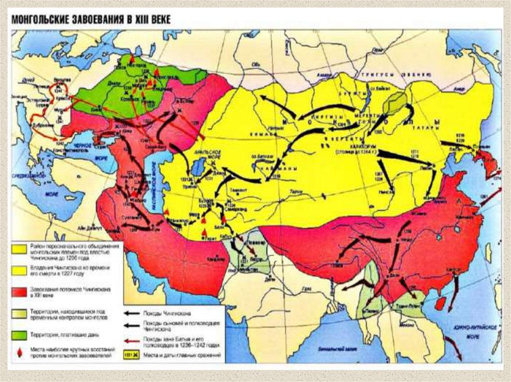 Покорив в 1215 г. Китай, в 1221 г. Среднюю Азию,
