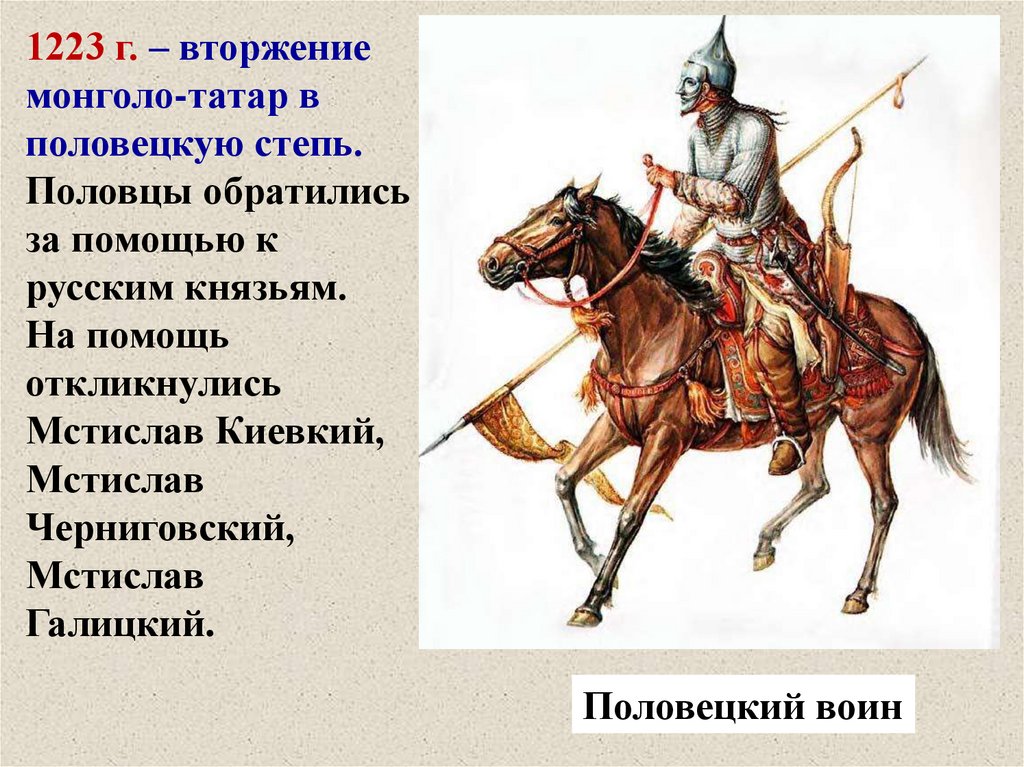 1223 г. – вторжениемонголо-татар в