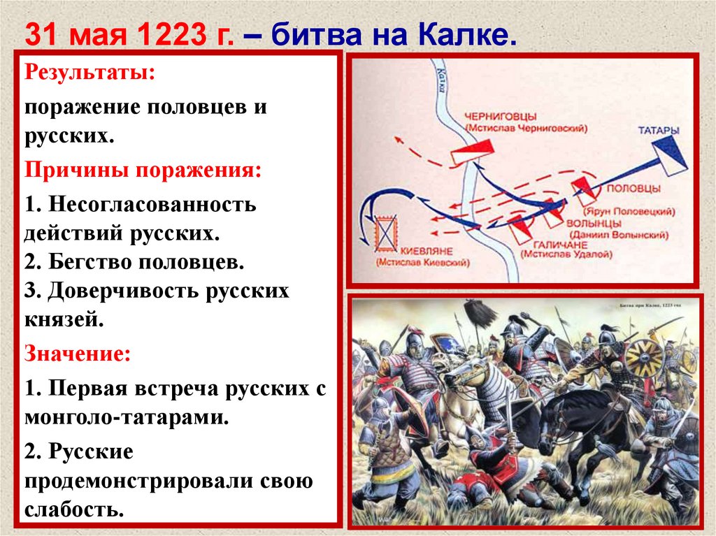 31 мая 1223 г. – битва на Калке.Результаты: