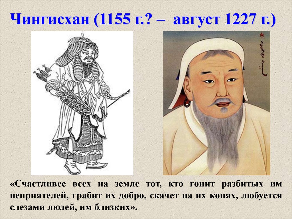 Чингисхан (1155 г.? – август 1227 г.)«Счастливее всех на земле тот, кто гонит разбитых им