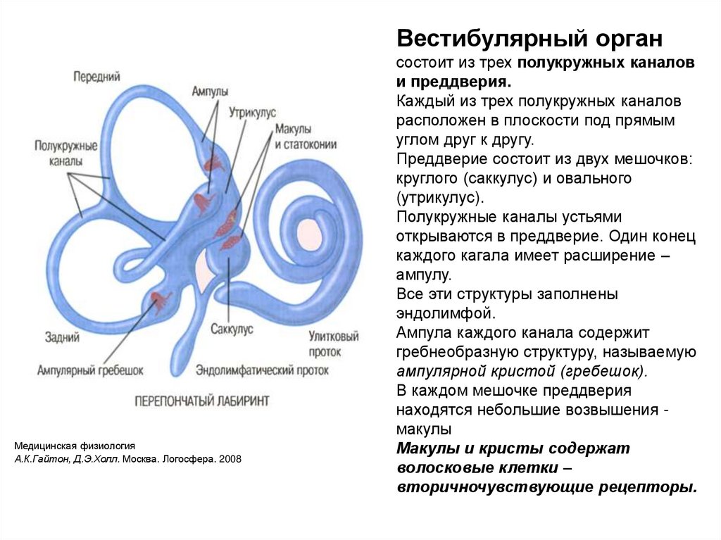 вестибулярного органа, зрительного анализатора и рецепторов внутренних
