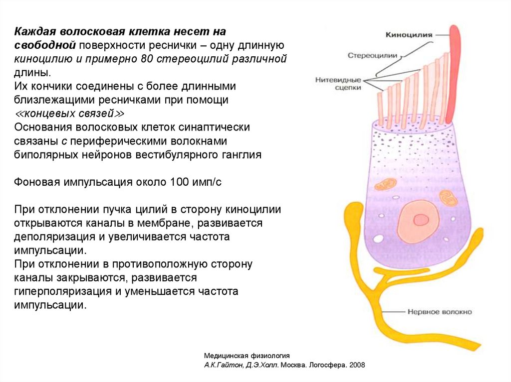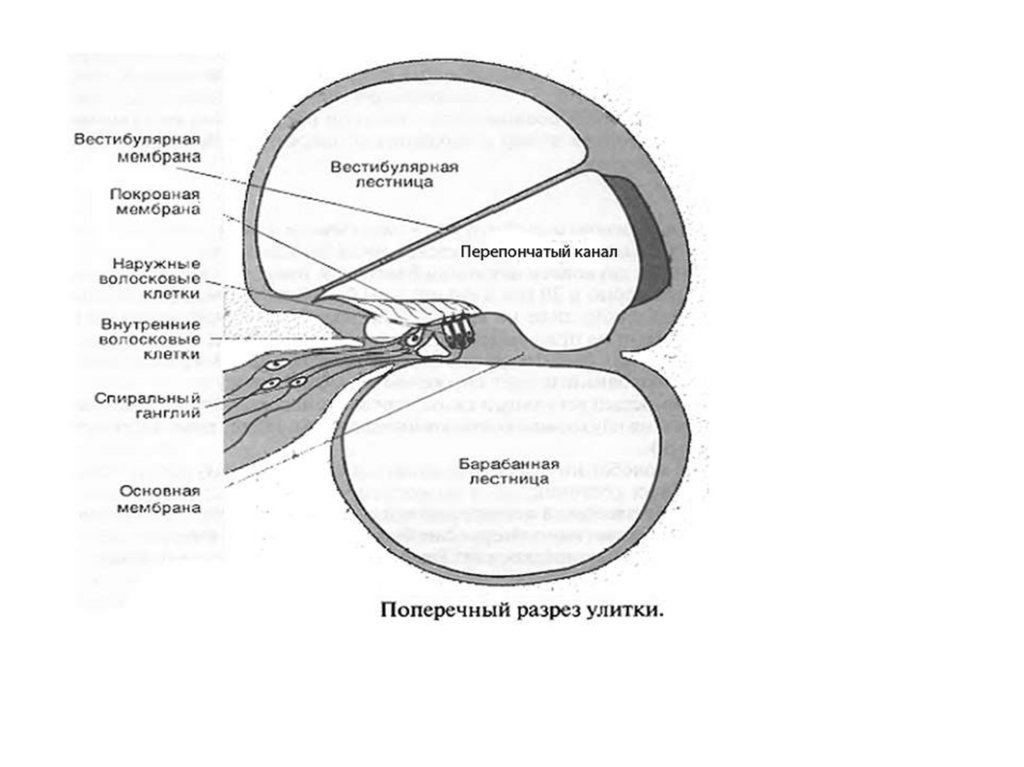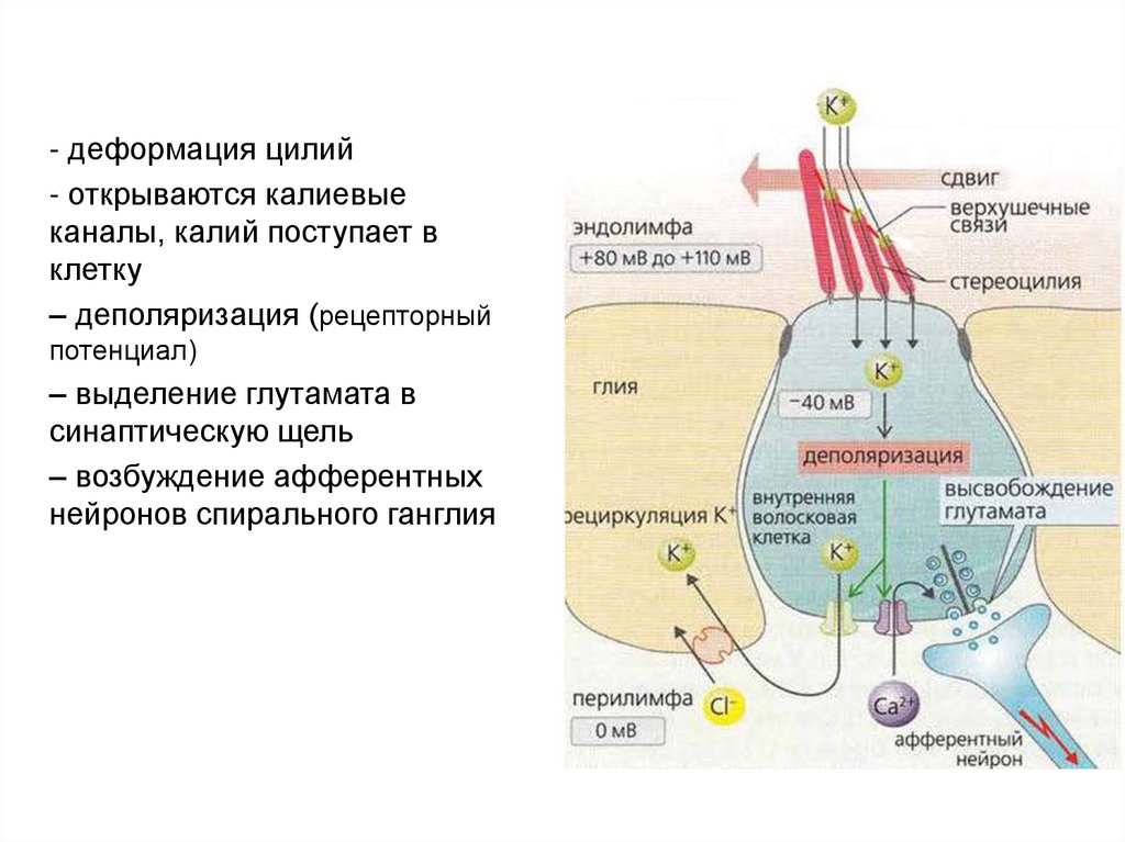 калия в волосковые клетки и деполяризации их мембраны, т.е., генерации рецепторного