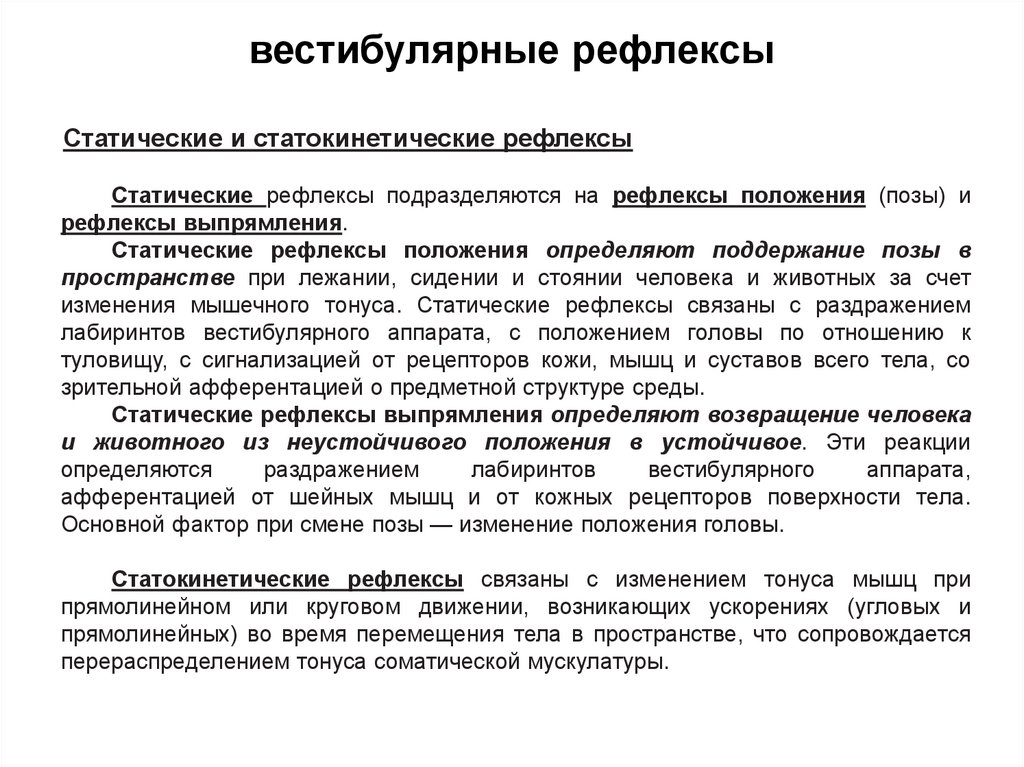 вестибулярные рефлексыСтатические и статокинетические рефлексы