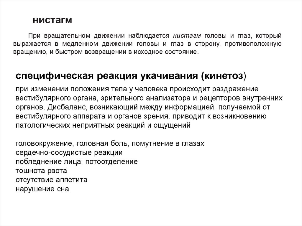 вестибулярного аппарата и органов зрения, приводит к возникновению