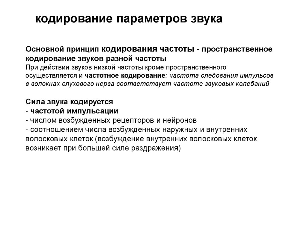 кодирование параметров звукаОсновной принцип кодирования частоты - пространственное
