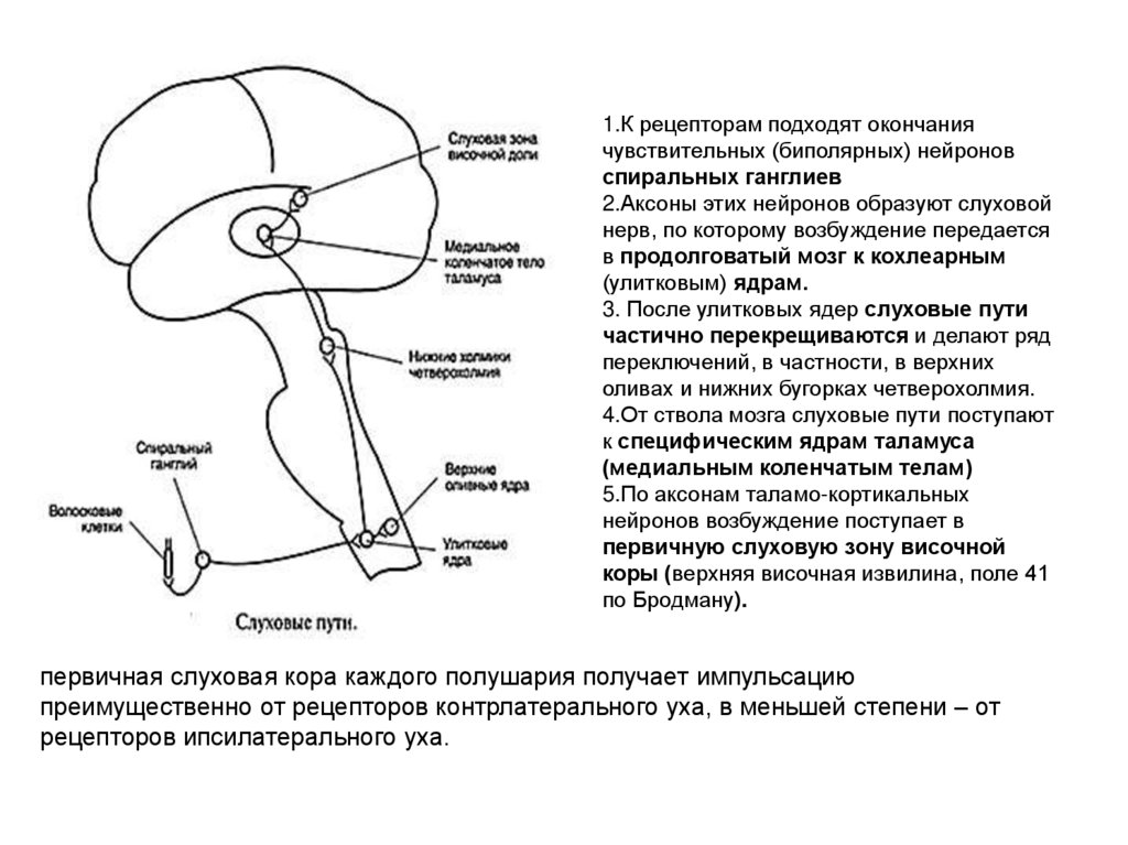 преимущественно от рецепторов контрлатерального уха, в меньшей степени – от