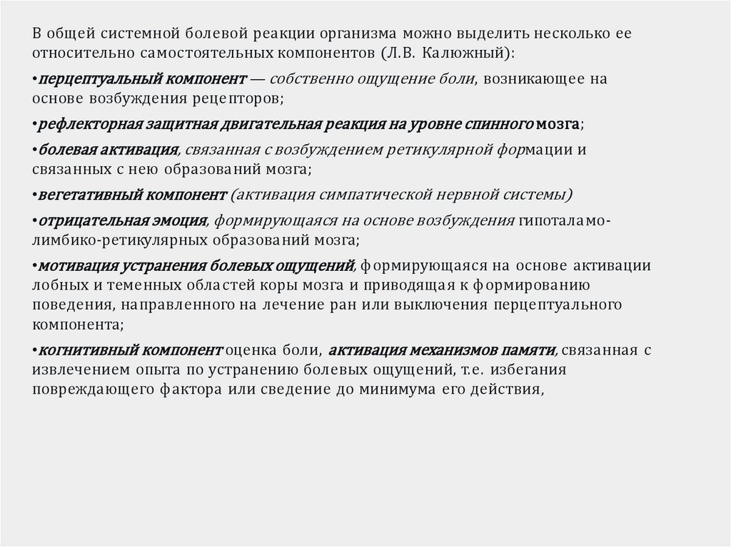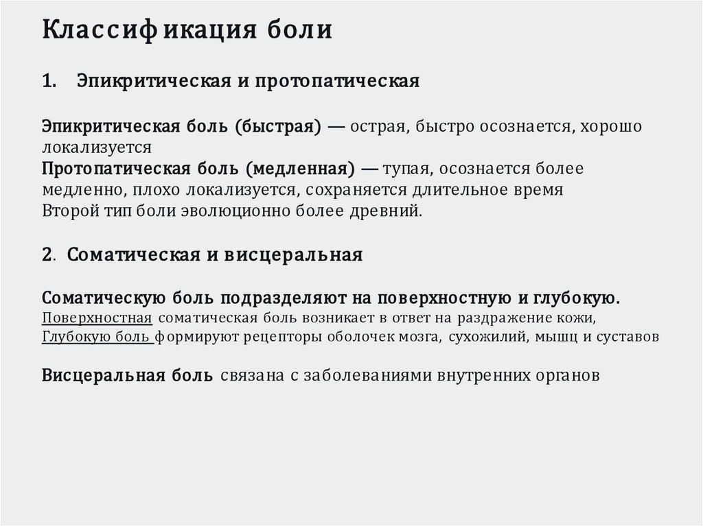 Эпикритичес кая боль (быстрая) — острая, быстро осознается, хорошо