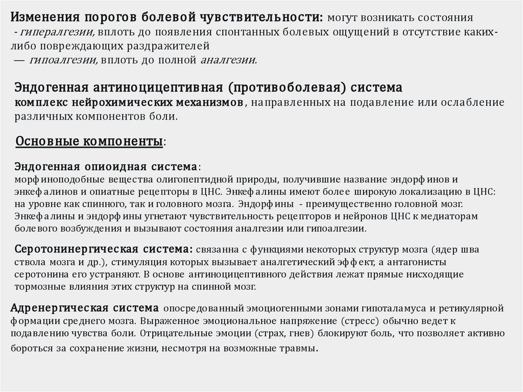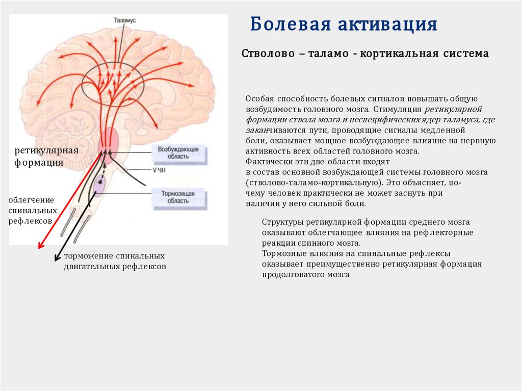 структуры, формируется аналгезия с подавлением эмоционально-поведенческих реакций и