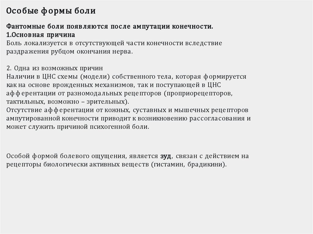Ос обые ф ормы болиФантомные боли появляются пос ле ампутации конечнос ти.