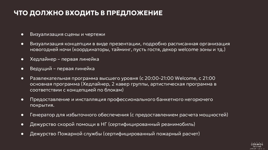 ЧТО ДОЛЖНО ВХОДИТЬ В ПРЕДЛОЖЕНИЕВизуализация сцены и чертежи