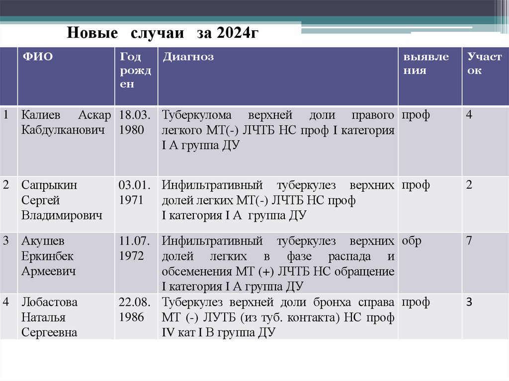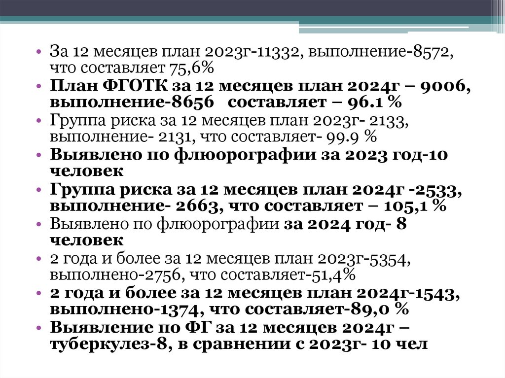 • В 2024г по базе флюорокартотеки: из 8 новых случаев 5 случая ФГ не проходили
