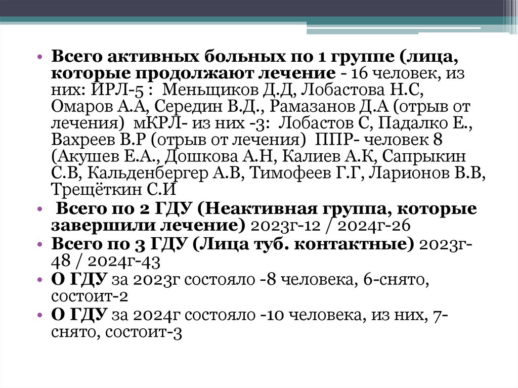• О ГДУ за 2024г состояло -10 человека, из них, 7снято, состоит-3