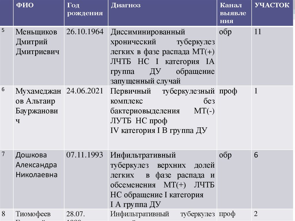 • В 2023г Выявленные по флюорографий лица НС из 10 человек 2-рецидив, 6-НС непроходили ФГ 2 года и более.