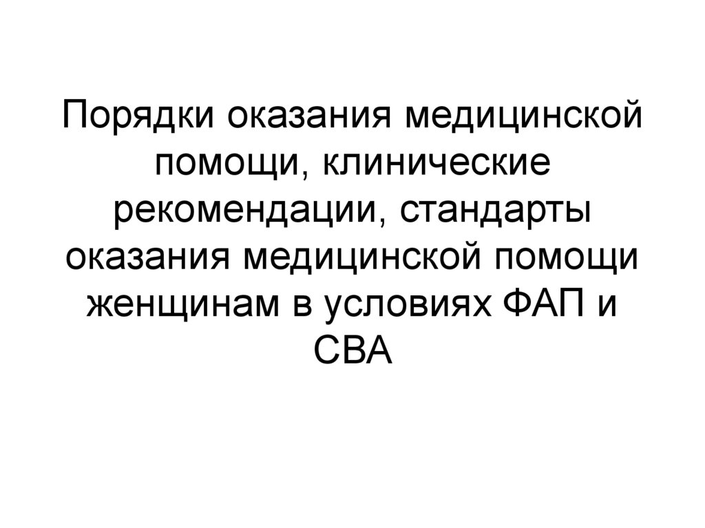 1. Порядки оказания медицинской помощи, клинические рекомендации, стандарты оказания медицинской помощи женщинам в условиях ФАП и