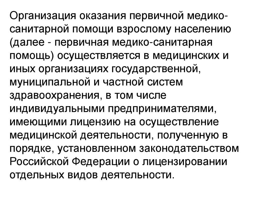 Организация оказания первичной медикосанитарной помощи взрослому населению(далее - первичная медико-санитарная