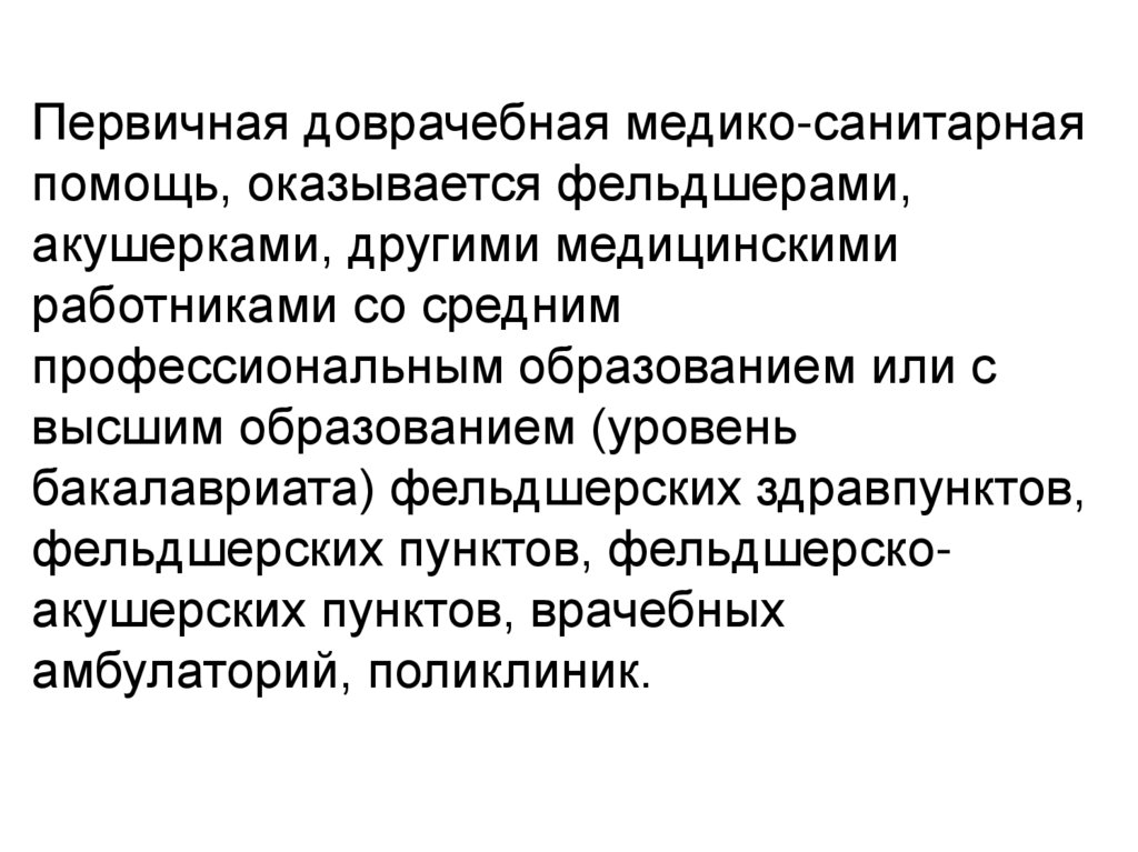 Первичная доврачебная медико-санитарнаяпомощь, оказывается фельдшерами,