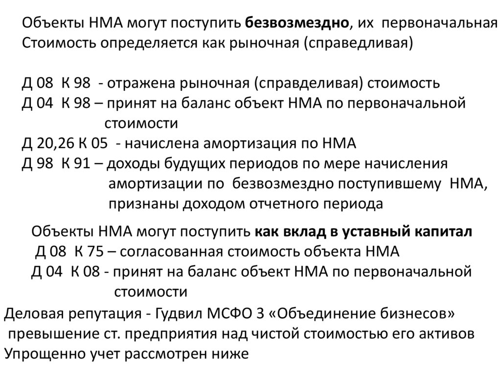 Объекты НМА могут поступить безвозмездно, их первоначальнаяСтоимость определяется как рыночная (справедливая)