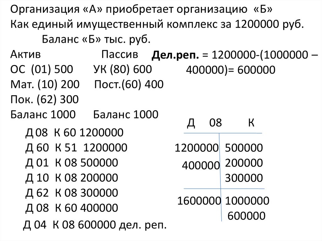 Организация «А» приобретает организацию «Б»Как единый имущественный комплекс за 1200000 руб.
