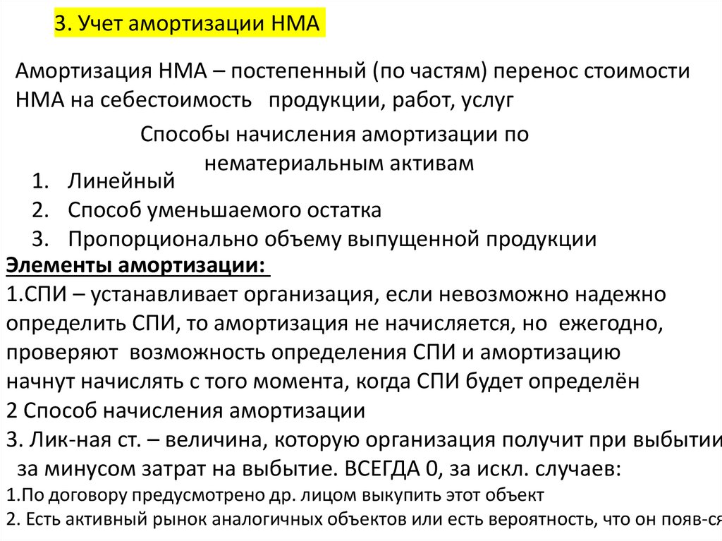 3. Учет амортизации НМААмортизация НМА – постепенный (по частям) перенос стоимости
